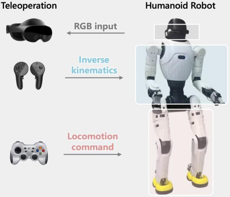 让人形机器人能够像人一样完成装箱、搬运、推车等移动操作任务,一直是人们对具身智能的期待。近日,来自香港大学、智元AGIBOT、复旦大学和上海创智学院的联合研究团队提出了WholeBodyVLA,一种面向真实世界的人形机器人全身Vision–Language–Action 框架。该工作基于智元灵犀X2研究发布,将VLA(视觉语言动作模型)扩展至双足人形机器人的全身控制,验证了其在全身移动操作任务中的可行性。 与原地操作相比,移动操作的难点不在于单一技能,而在于行走与操作必须在同一任务中长期、稳定地协同发生。围绕这一挑战,WholeBodyVLA 总结出限制移动操作发展的两个核心问题:真机数据稀缺和运动执行中的不稳定性。 相比原地操作,人形机器人在移动操作任务中的数据采集要“贵”得多。往往需要不止一个数采员同时遥操机器人上半身进行操作、下半身完成行走,这通常只能通过混合方案实现(例如 VR 控制上半身、遥控器控制下半身),这种方式操作流程长、效率低;或者使用全身动捕系统,但价格高昂。 相比纯粹的操作,移动操作对运动精准性和稳定性的要求高的多,任何偏离都可能导致目标操作物体脱离相机视野和工作空间。即使VLA输出了正确的运动指令,下半身控制器仍然有概率执行失败,例如出现走歪、踉跄等现象。